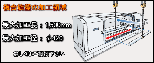丸物加工は径がφ500(直径500mm)まで、長尺物の長さは3Mまで対応可能です。
